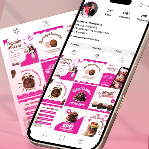 100 publicaciones listas para promocionar tu negocio o emprendimiento de repostería/pastelería: faciles de usar y personalizar con tus productos usando Canva gratis.