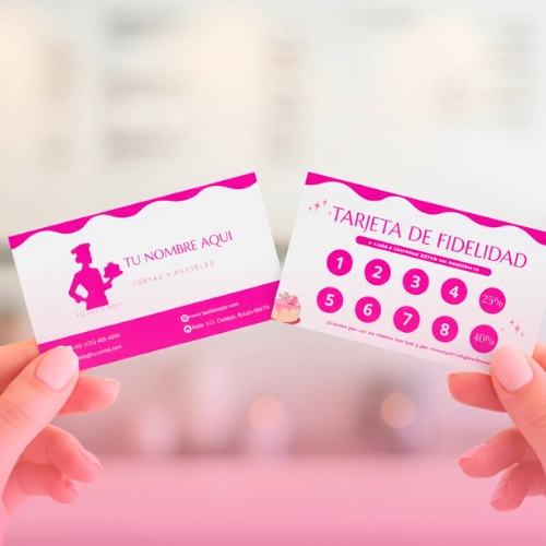 Tarjeta de fidelidad: Con esta tarjeta editable e imprimible podrás premiar la fidelidad de tus clientes de forma profesional y encantadora. Entrégala como incentivo para que regresen por más, mientras refuerzas la confianza y el amor hacia tu marca.
